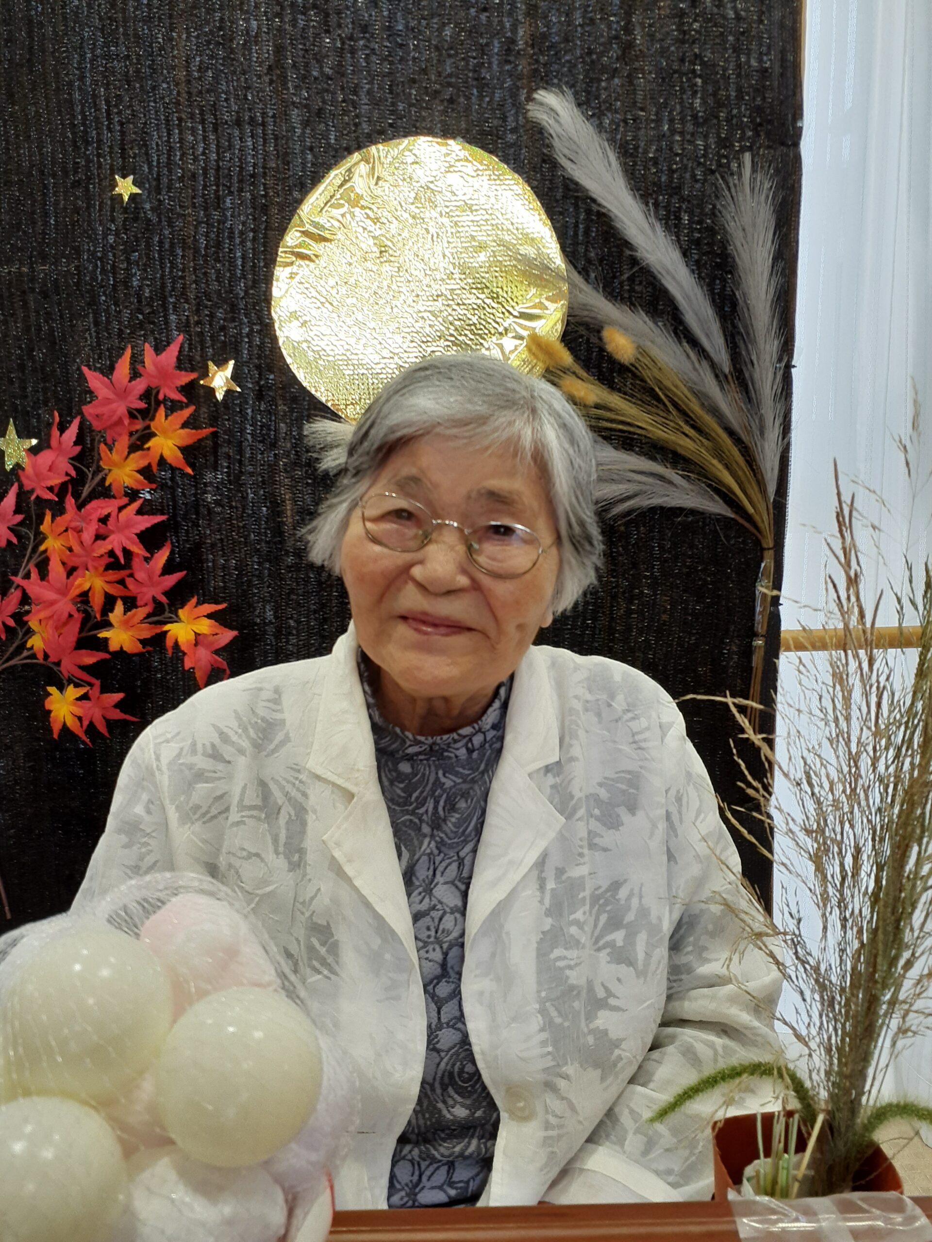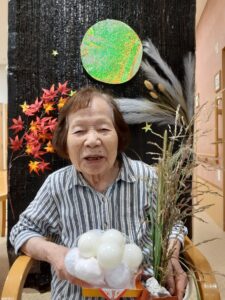 十五夜お月様…♪と聞こえてきそうなセットとお団子を片手に、皆様記念撮影を実施📷