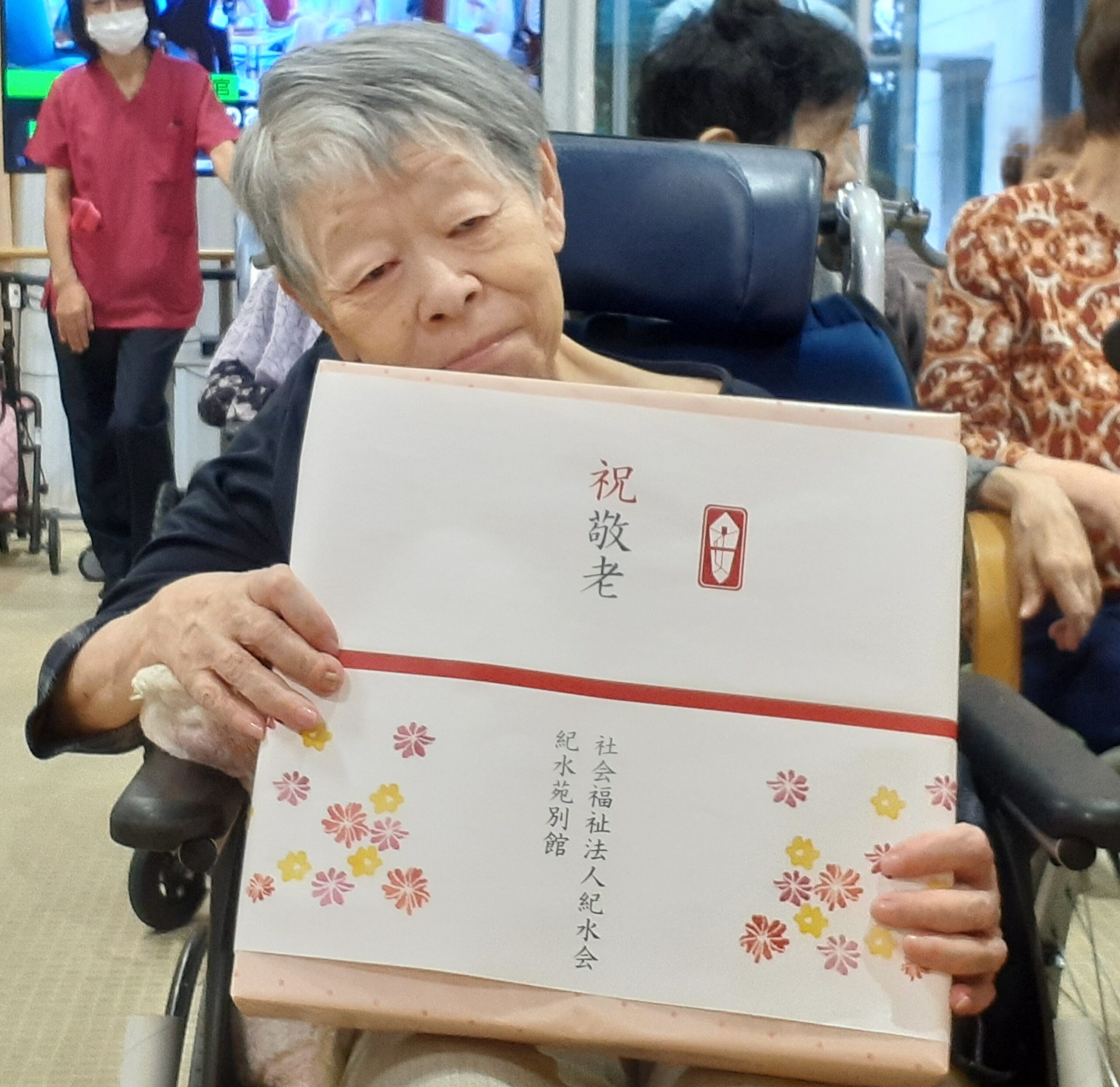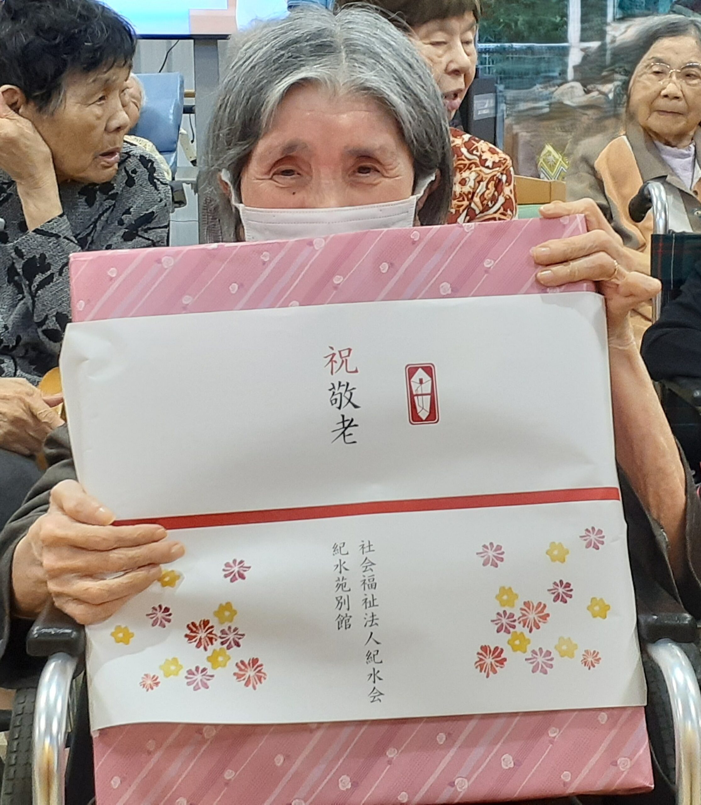 今年は喜寿、米寿それぞれお一人ずつという事で、式典で紹介した後に、お祝い品を受け取られました。