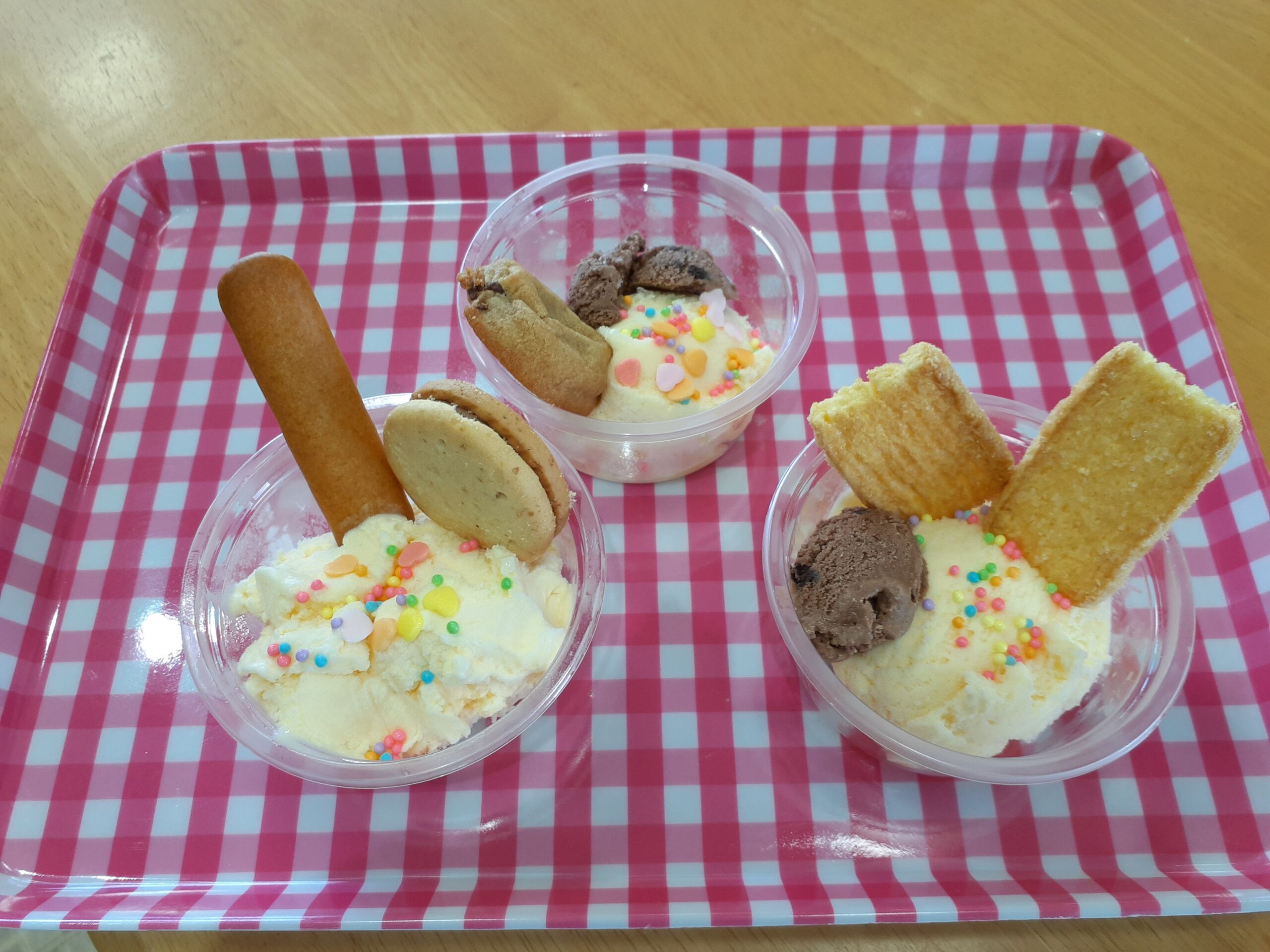 という事で、今年もアイスクリームを用意しました🍨また、今年はアイスクリームにトッピングも用意し、美味しく食べていただきました。