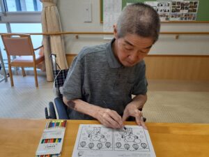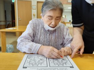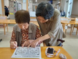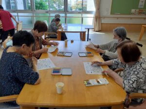 初めて実施した脳トレでしたが、皆様話し合いながら取り組まれ、コミュニケーションの輪が広まりとても楽しんでいました。