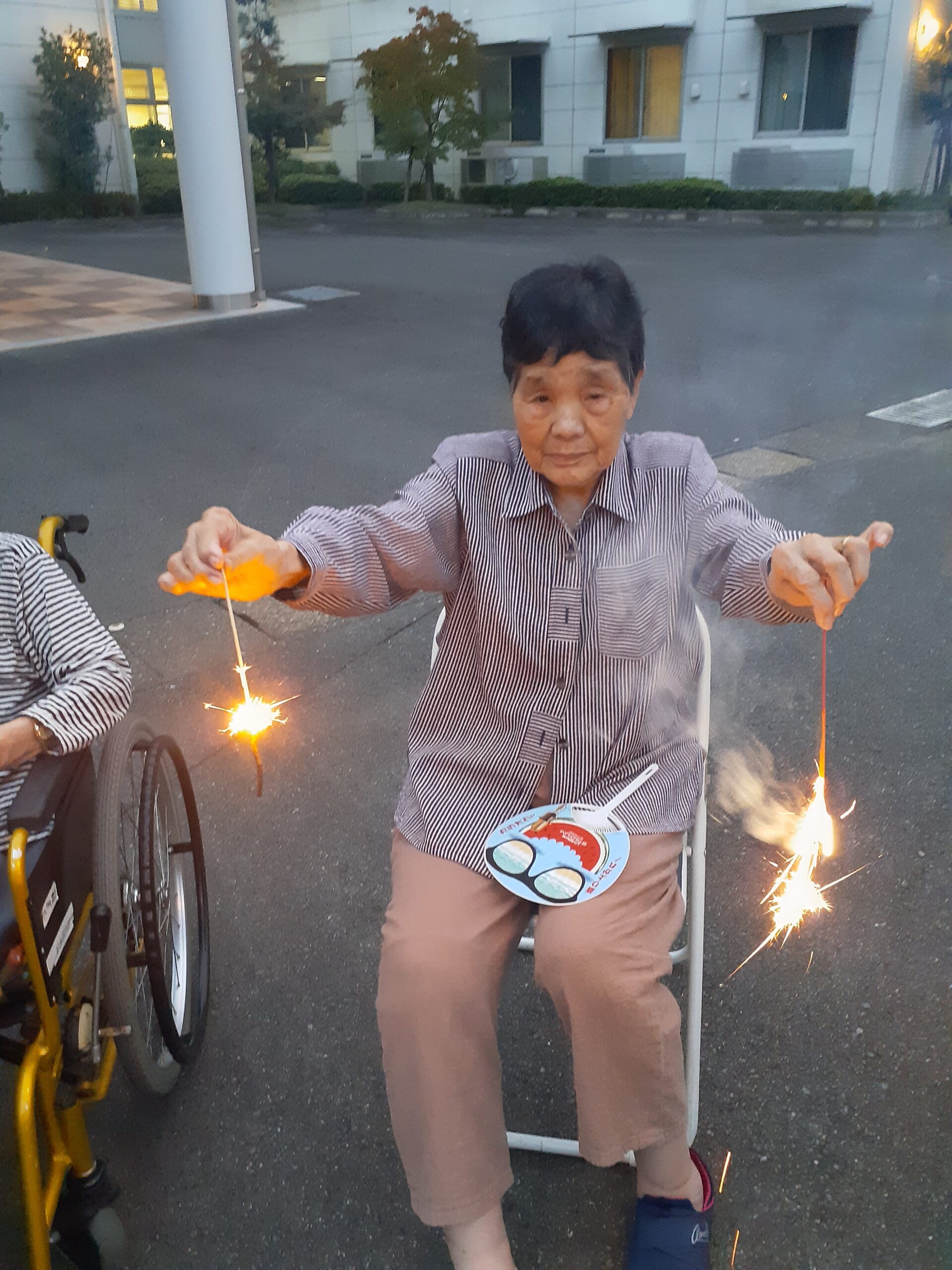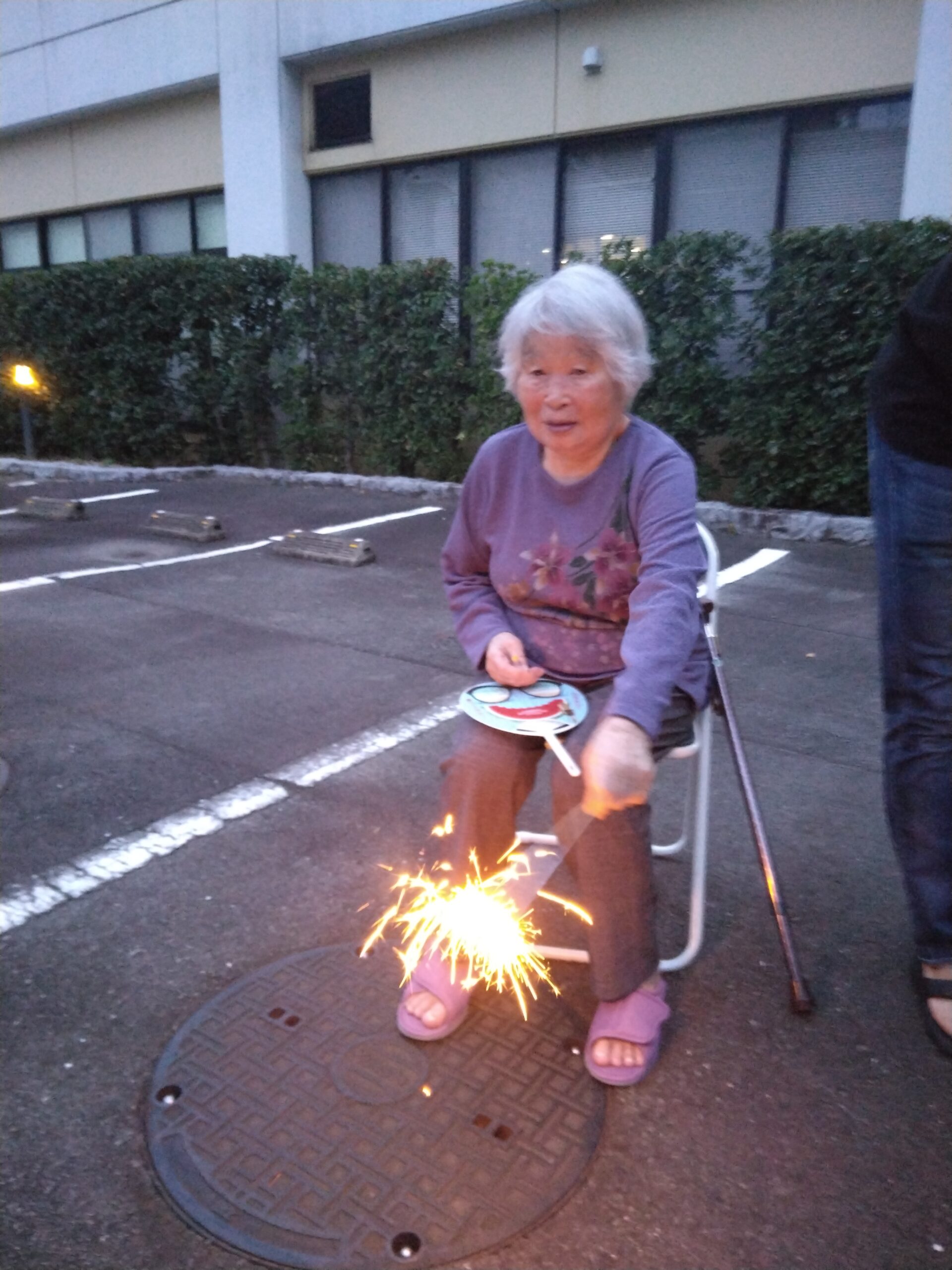 そんな中、いざ花火をすると「綺麗かー」「懐かしかねー」と、夏の暑さも忘れた様子で、久しぶりの花火を楽しまれました(*^-^*)